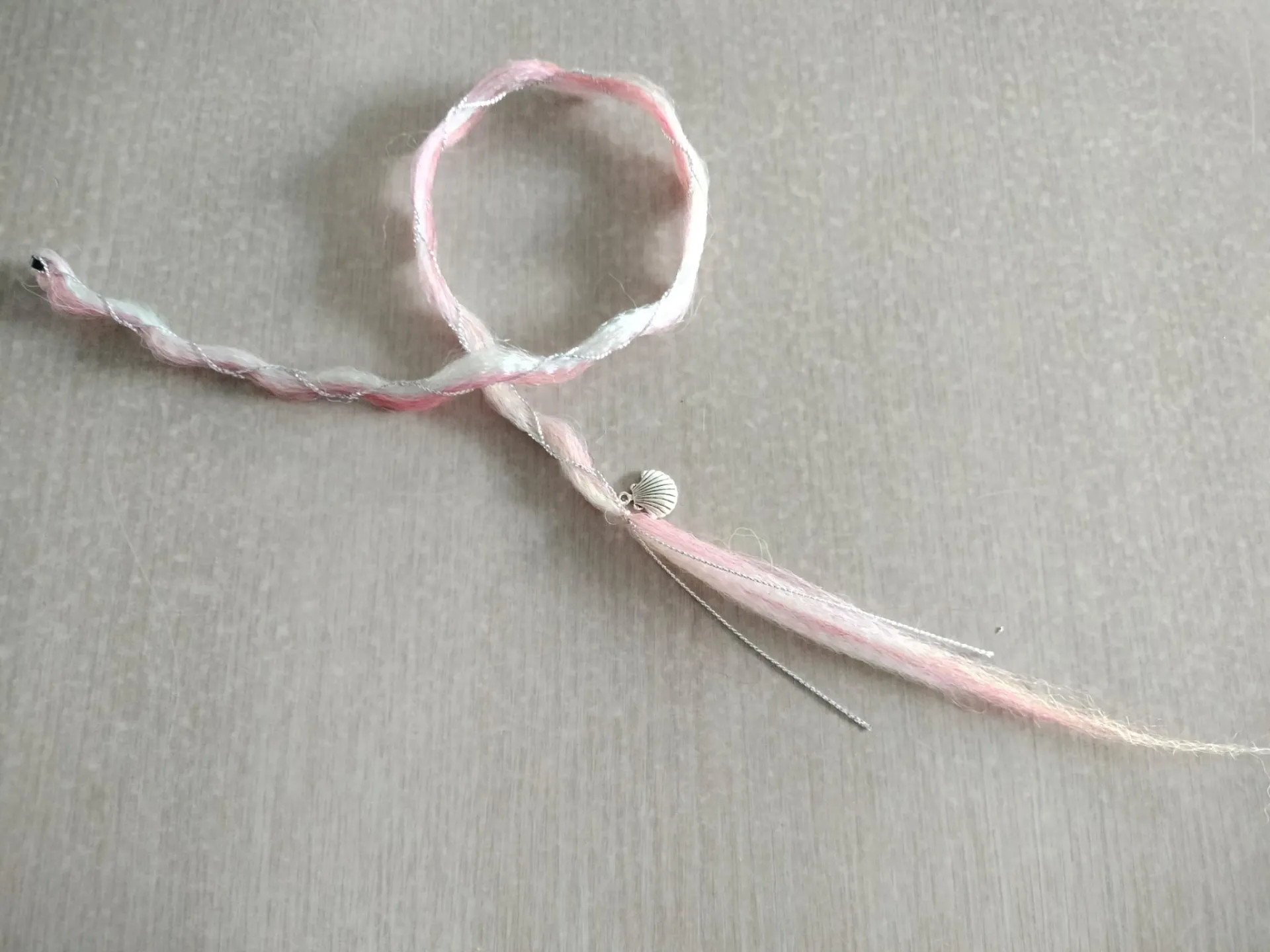 De Fairy Lock in Candy Cascade van Pixie Julie is een handgemaakt haaraccessoire van ongeveer 60 cm lang. Deze dikkere lock is omwikkeld met een zilverkleurige draad en afgewerkt met een schelpbedel – een krachtige en sprookjesachtige toevoeging aan je kapsel.