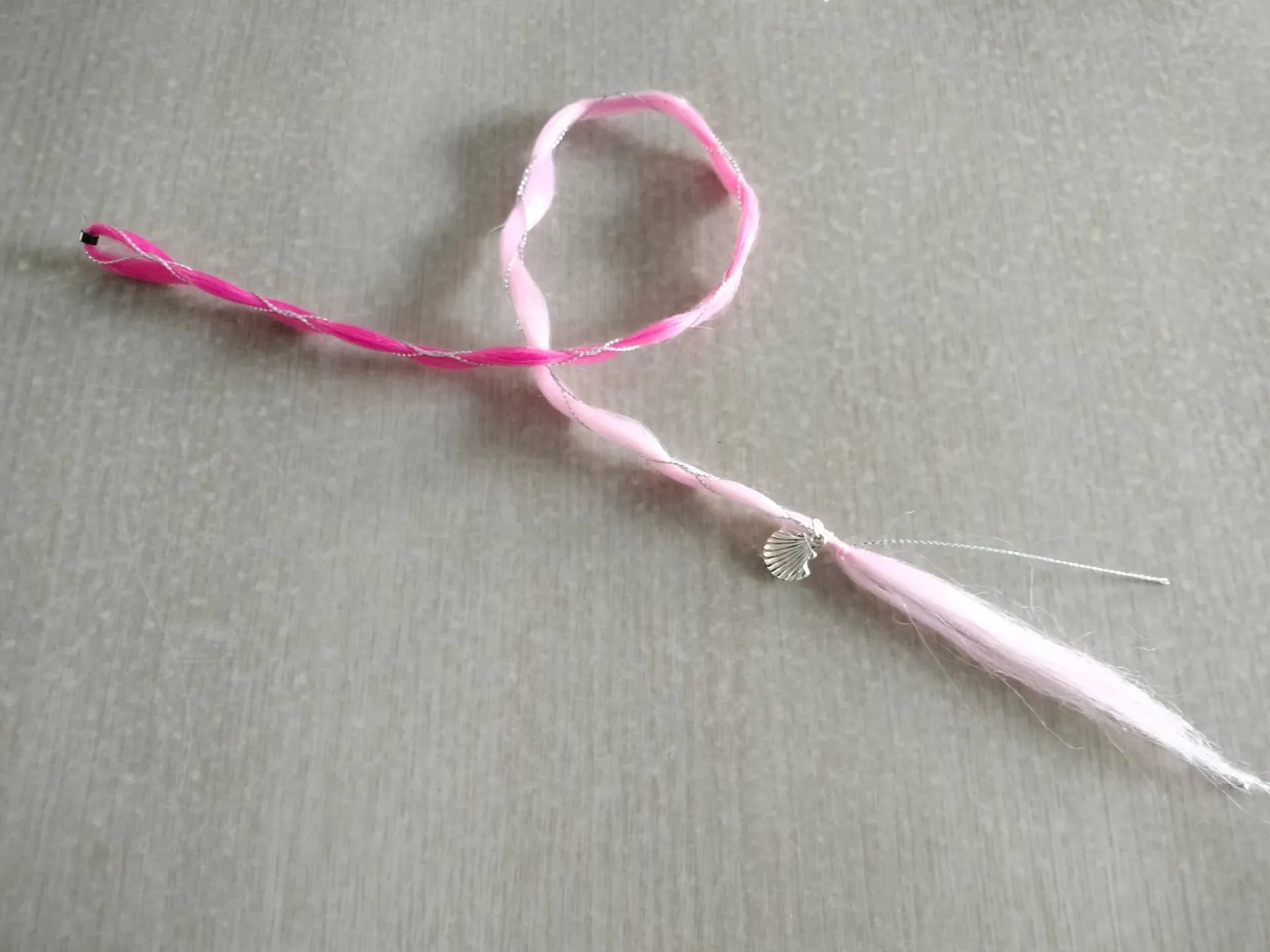 De Fairy Lock in Cherry Blossom van Pixie Julie is een handgemaakt haaraccessoire van ongeveer 60 cm lang. Deze dikkere lock is omwikkeld met een subtiele zilverkleurige draad en afgewerkt met een schelpbedel – een perfecte mix van stoer en magisch.