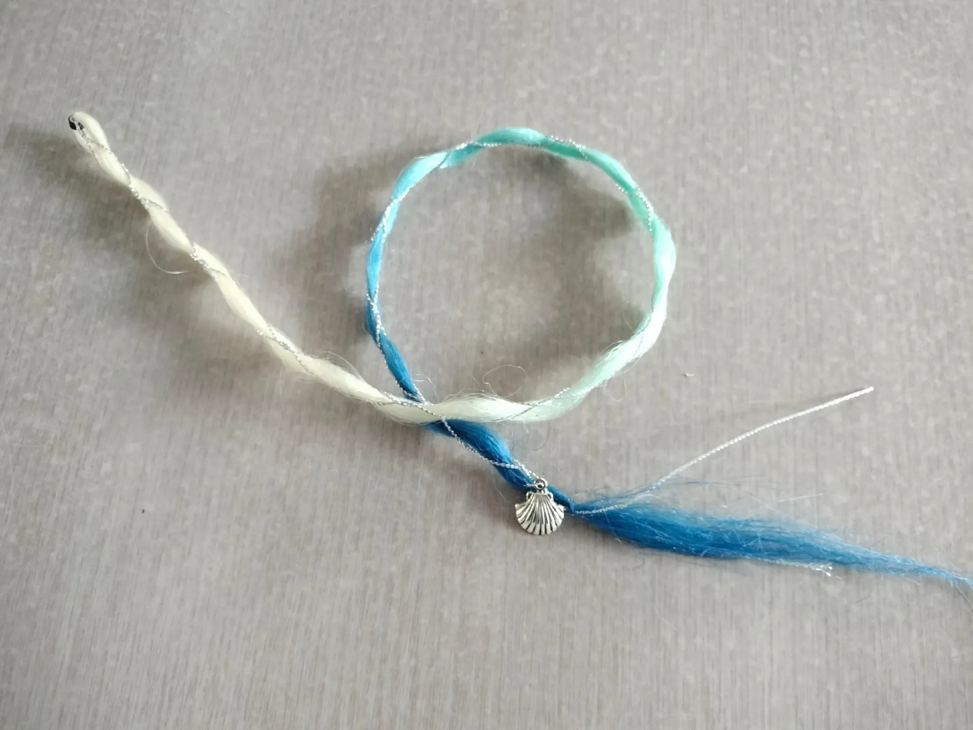 De Fairy Lock in Ocean Whisper van Pixie Julie is een handgemaakt haaraccessoire van ongeveer 60 cm lang. Deze dikkere lock is omwikkeld met een zilverkleurige draad en afgewerkt met een schelpbedel – een krachtige en magische toevoeging aan je kapsel.