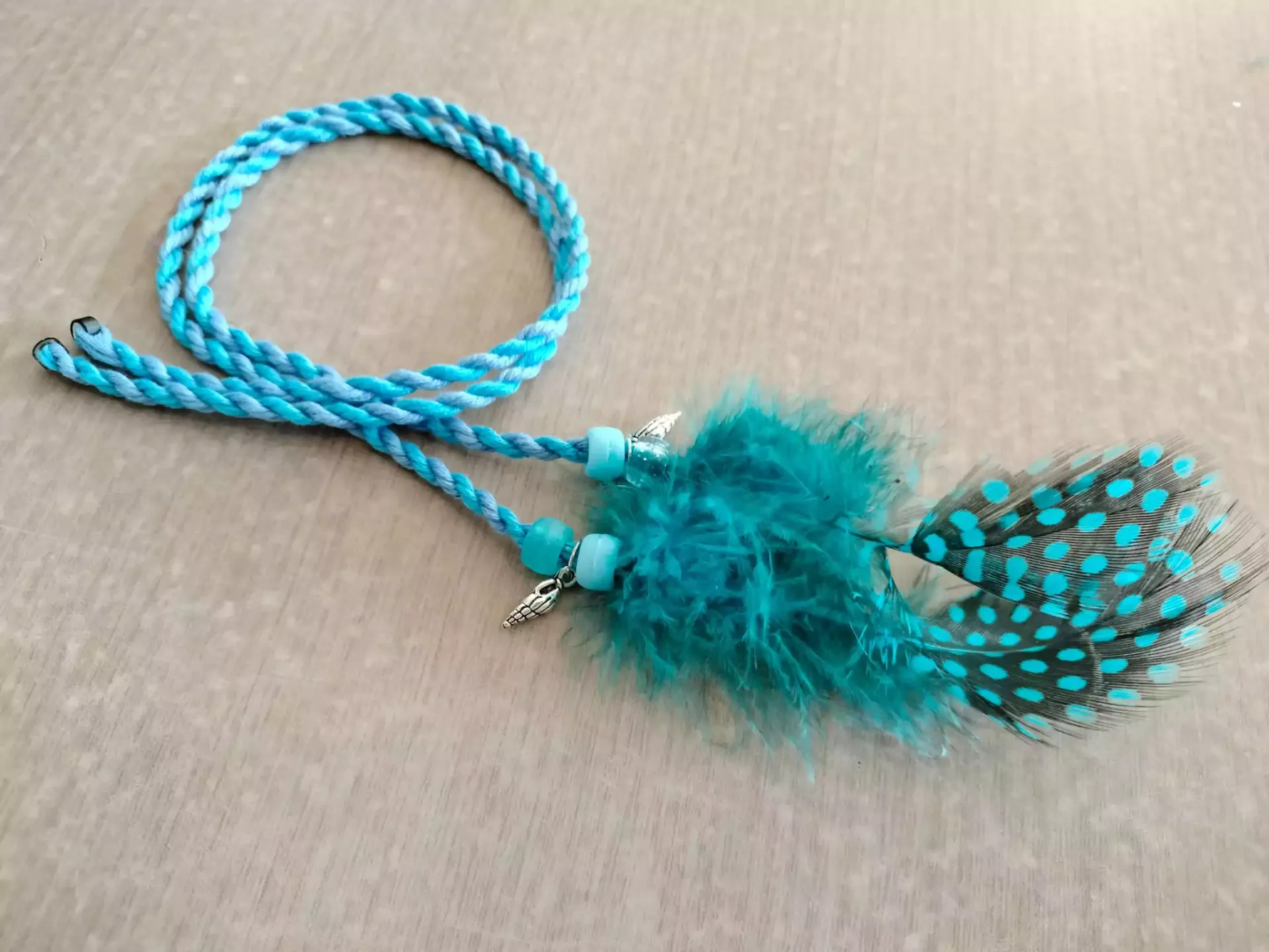 Elke Pixie Julie hairwrap is handgemaakt en ongeveer 40 cm lang. Onderzijde afgewerkt met twee kralen en een schelpbedel. Dankzij de microring onderaan kan je zelf de lengte aanpassen – vergeet niet de ring goed dicht te knijpen na het afstellen.