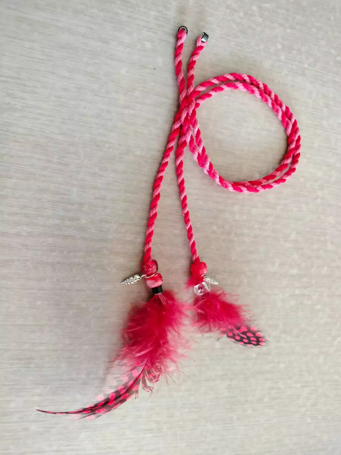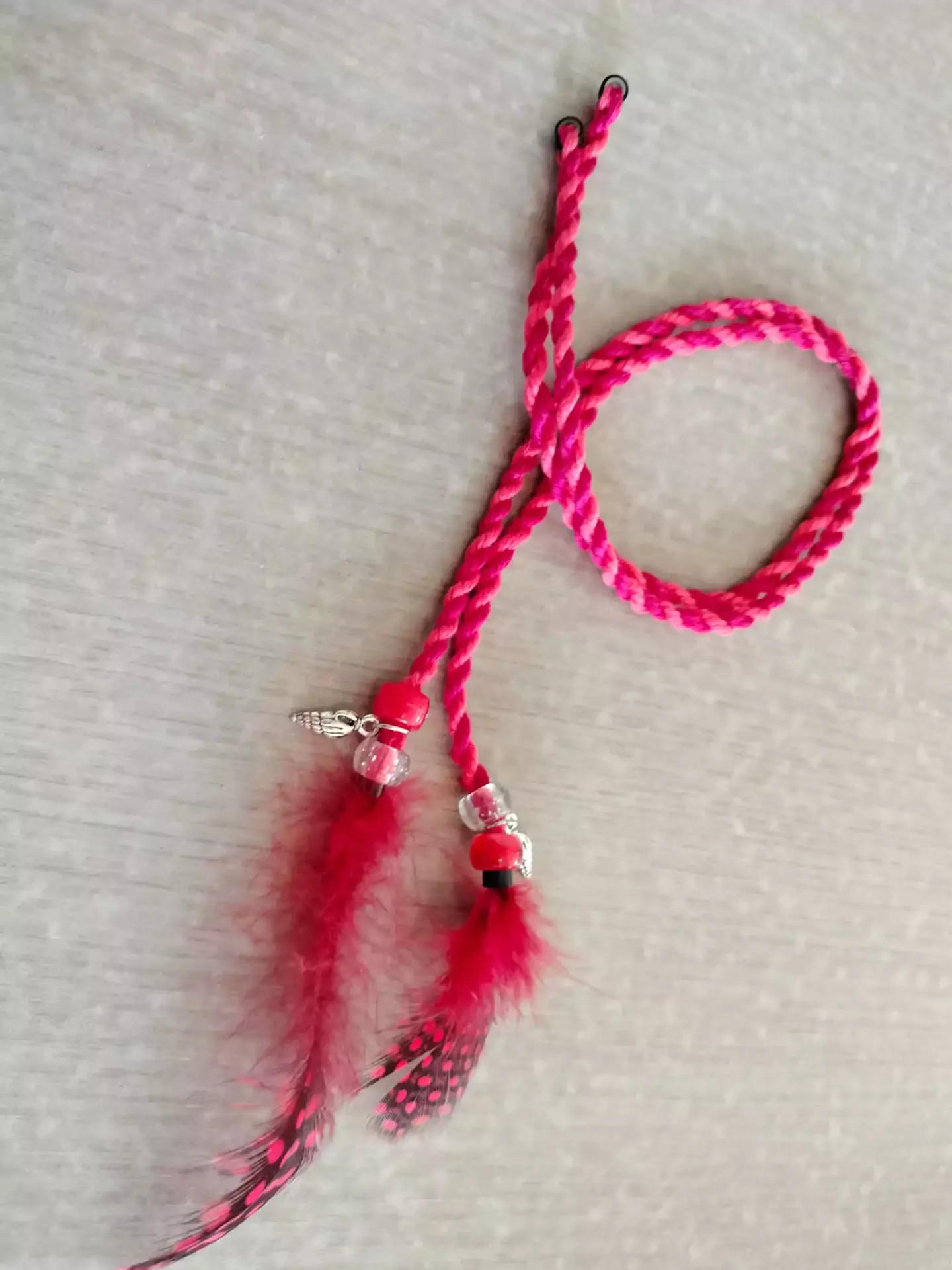 • Afgewerkt met kralen en schelpbedel
